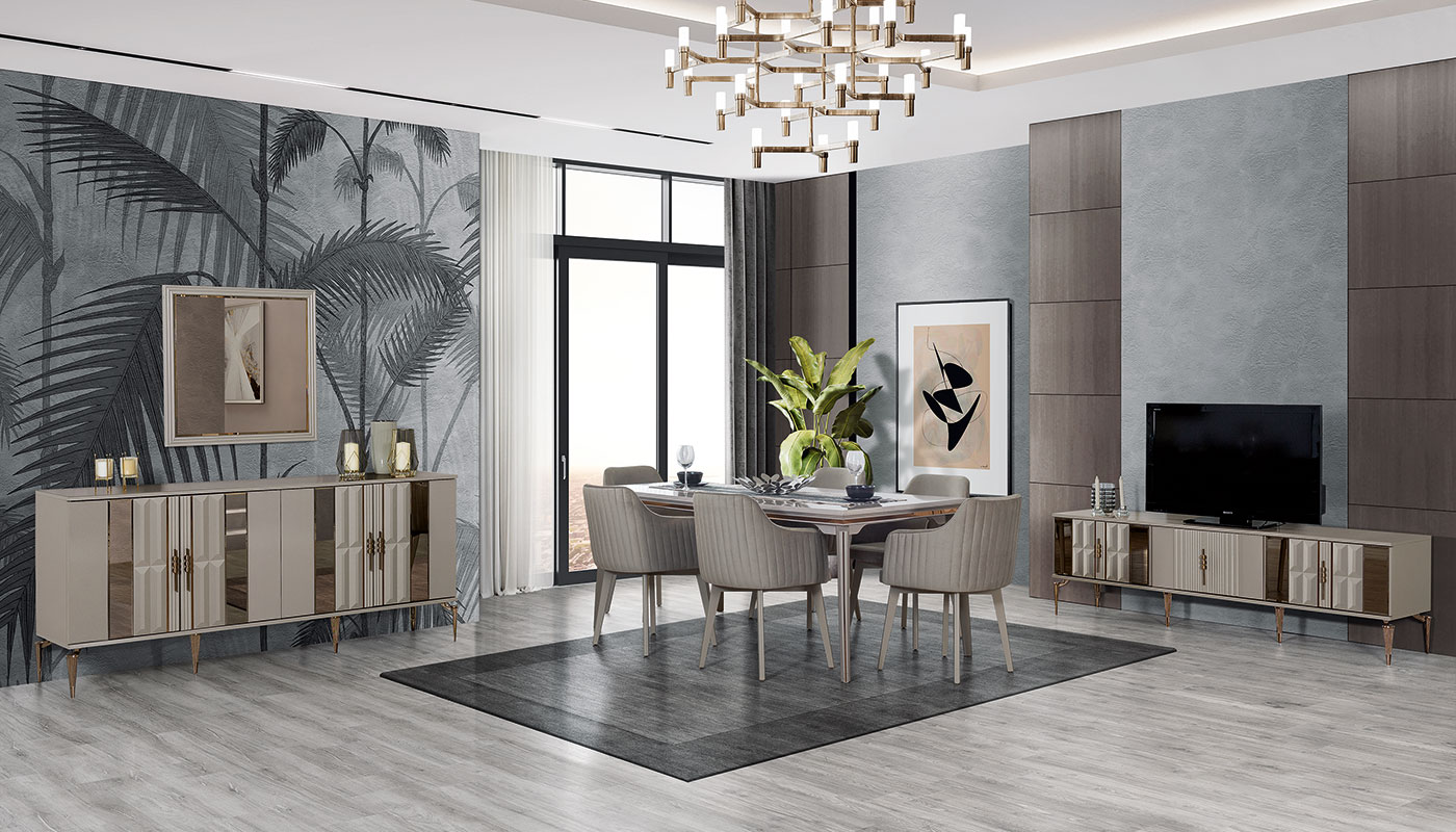 Göz alıcı detaylar ve zarif dokunuşlarla tasarlanmış yemek odalarımız, sevdiklerinizle geçirdiğiniz her ana estetik bir değer katar.